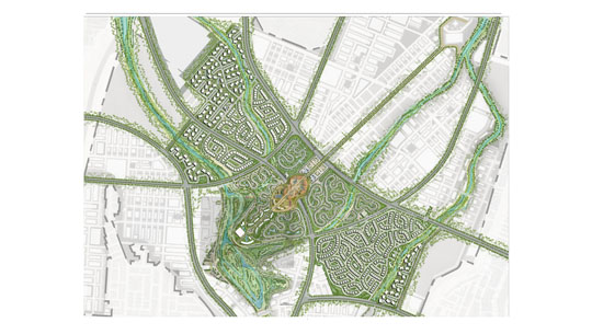 - المساحات الخضراء: الحديقة الكبرى كمركز نابض يربط الأحياء.