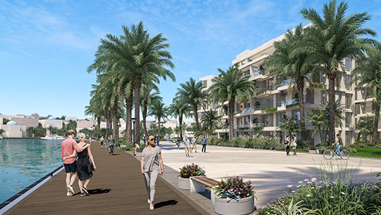 استثمر المخطط العام للمشروع التضاريس الطبيعية المرتفعة تدريجياً من البحر اتجاه الجنوب لتخطيط المناطق السكنية المختلفة بما يتيح لها اطلالات مميزة على شاطئ البحر بطول نحو ٥.٥ كيلو متر أو على البحيرات الممتدة وسط المساحات الخضراء فضلاً عن الوحدات التي تطل على مارينا اليخوت أو ملاعب الجولف العالمية، بالإضافة إلى التخطيط المميز لوضع الخدمات المختلفة التي تجعل من المشروع وجهة مثالية للسكن والترفيه.