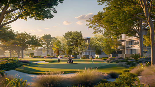 تتميز شاليهات وشقق الجولف بإطلالاتها الخلابة على ملاعب الجولف العالمية المطلة على البحر، لتجربة سكن ساحلي سكن فريدة من نوعها.