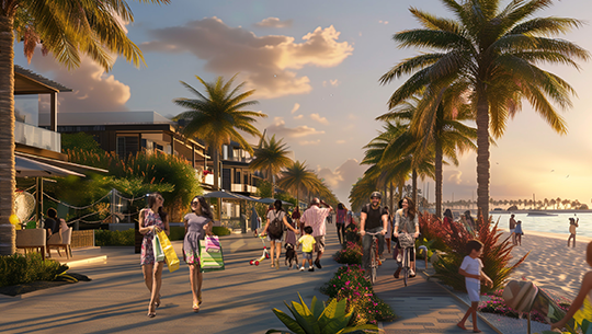 تمتد على مساحة 6 مليون متر مربع، وتتميز بتصميماتها المعمارية الفريدة وإطلالاتها الساحرة على الكريستال لاجونز، وبمساحات داخلية متعددة تلبي مختلف الاحتياجات.