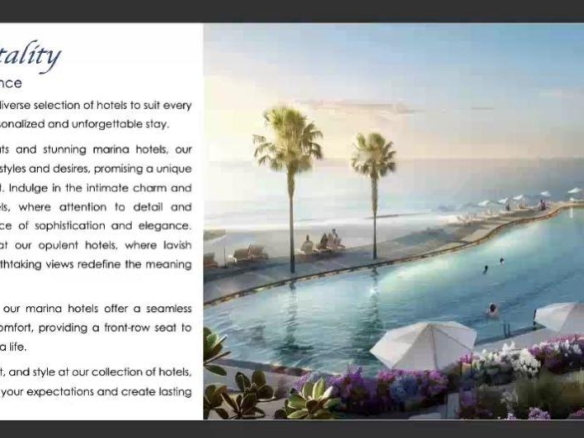 تعتبر المارينا مقصداً لليخوت الراقية على نطاق مختلف عن المراسي المماثلة الأخرى في أوروبا، كما تعد مركزًا حيويًا للأنشطة المتنوعة داخل المشروع حيث يوجد بها مجموعة متنوعة من العلامات التجارية الراقية المعروفة محلياً وعالمياً وفندق عالمي بالإضافة إلى والمطاعم والكافيهات المطلة على البحر، لتقدم مزيجًا مثاليًا من السياحة والتسوق والترفيه وخدمات رجال الأعمال والعديد من الخدمات الأخرى.