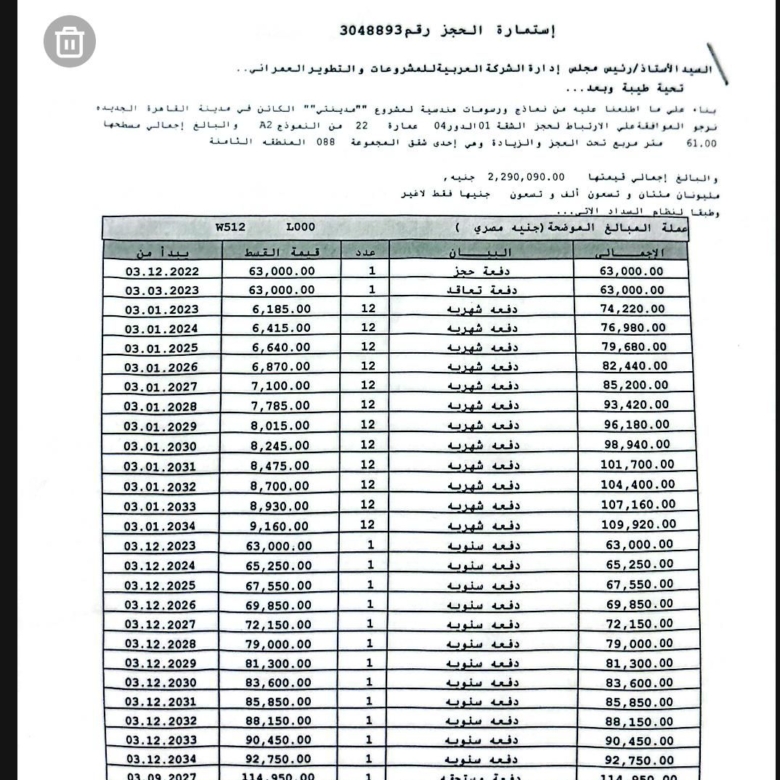 توتال 2 مليون و 200 الف تقسيط على 12 سنة