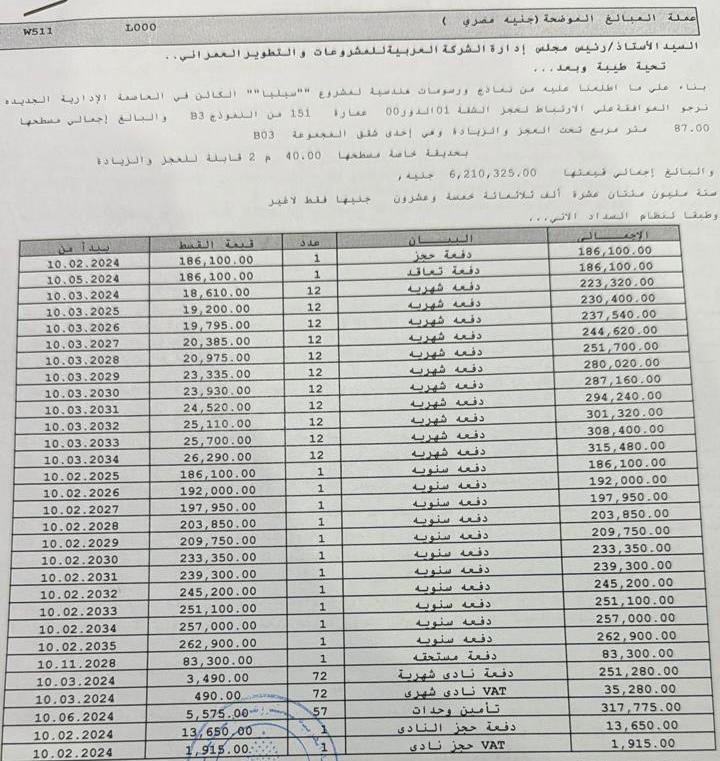 بإجمالى سعر 6,210,325 تقسيط على 11 سنة