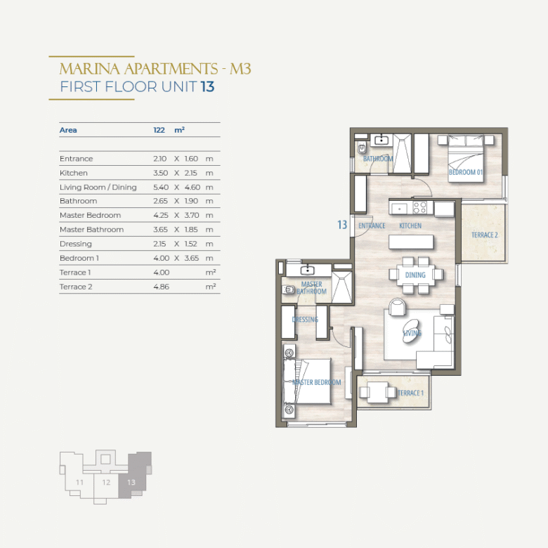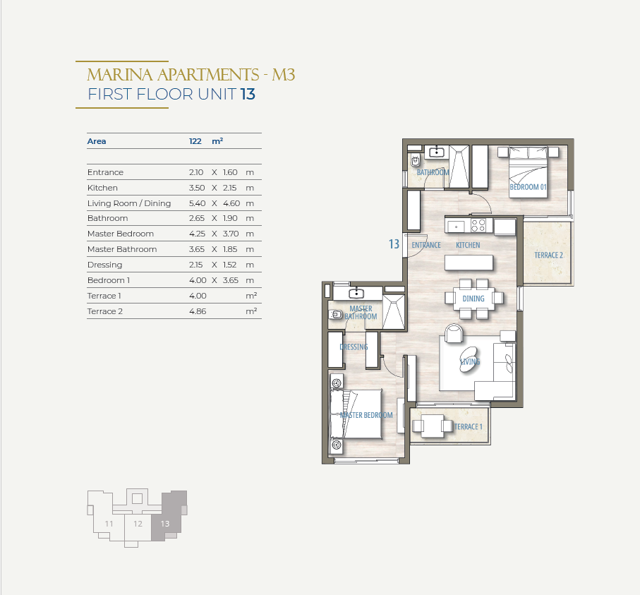 للبيع شالية 122 متر منطقة M3 مارينا عمارة 11 شالية 13
