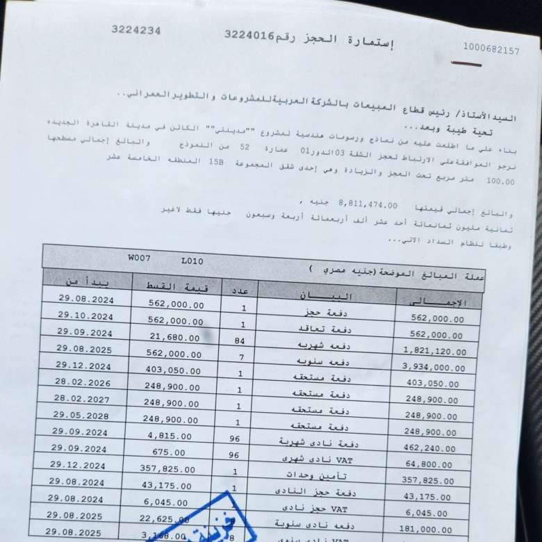 🌟اجمالى المدفوع ٢ مليون و ٣٠٠ الف و الشقة اعلي تميز L10 امام B14 بالكامل و امام الخدمات مباشرة