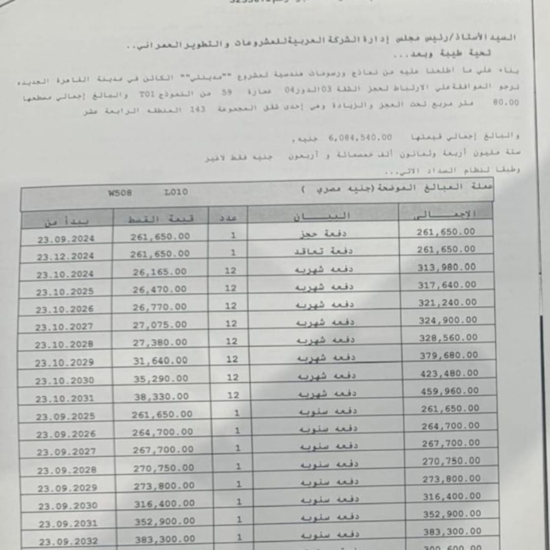💰 إجمالي التعاقد: 6,084,540 جنيه