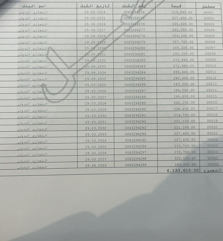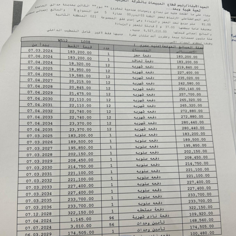 الإجمالى 6,527,210 تقسيط على 12,5 سنة