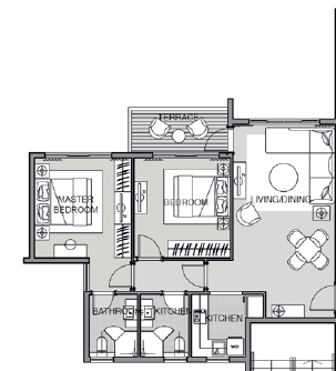 بمدينة نور شقة ٩٨ متر – غرفتين نوم ( منهم غرفة ماستر بحمام )