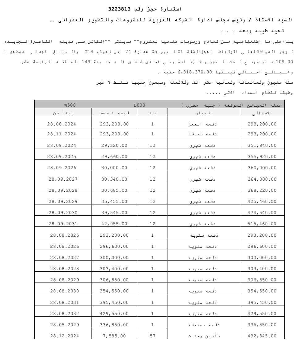 💰 إجمالي التعاقد: 6,818,370 جنيه