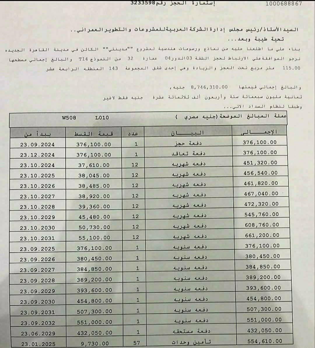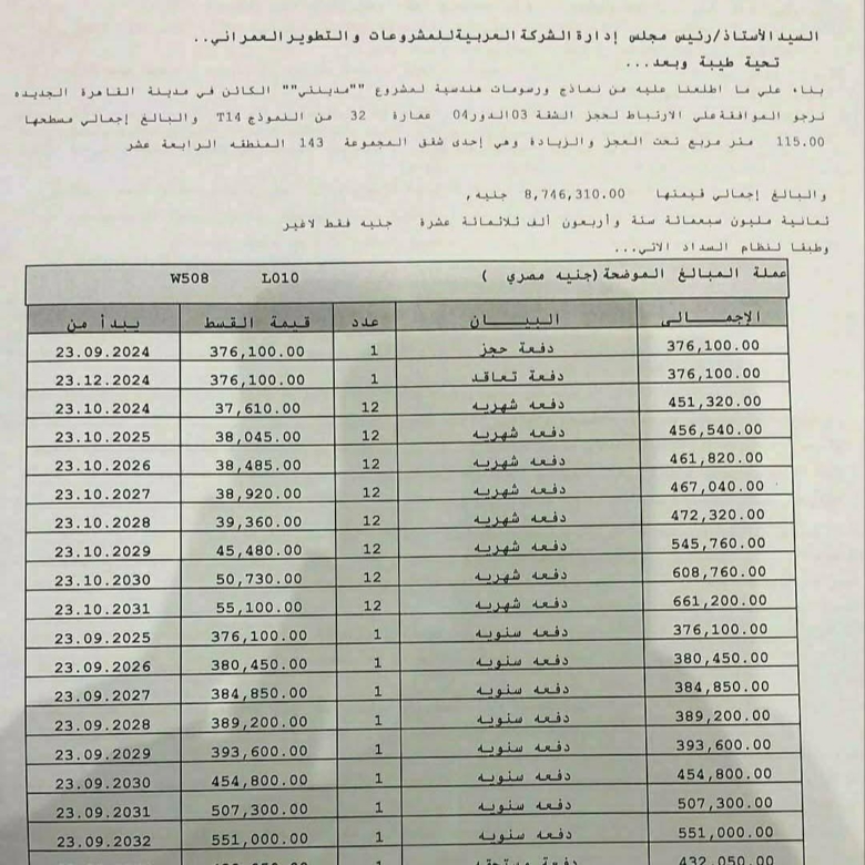 المسدد حوالى 1,900,000 مطلوب المدفوع فقط