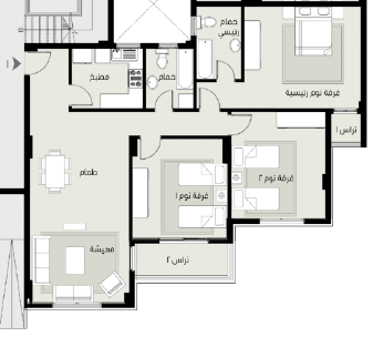 ✅التقسيمة 3 غرف و 2 حمام بها غرفه ماستر