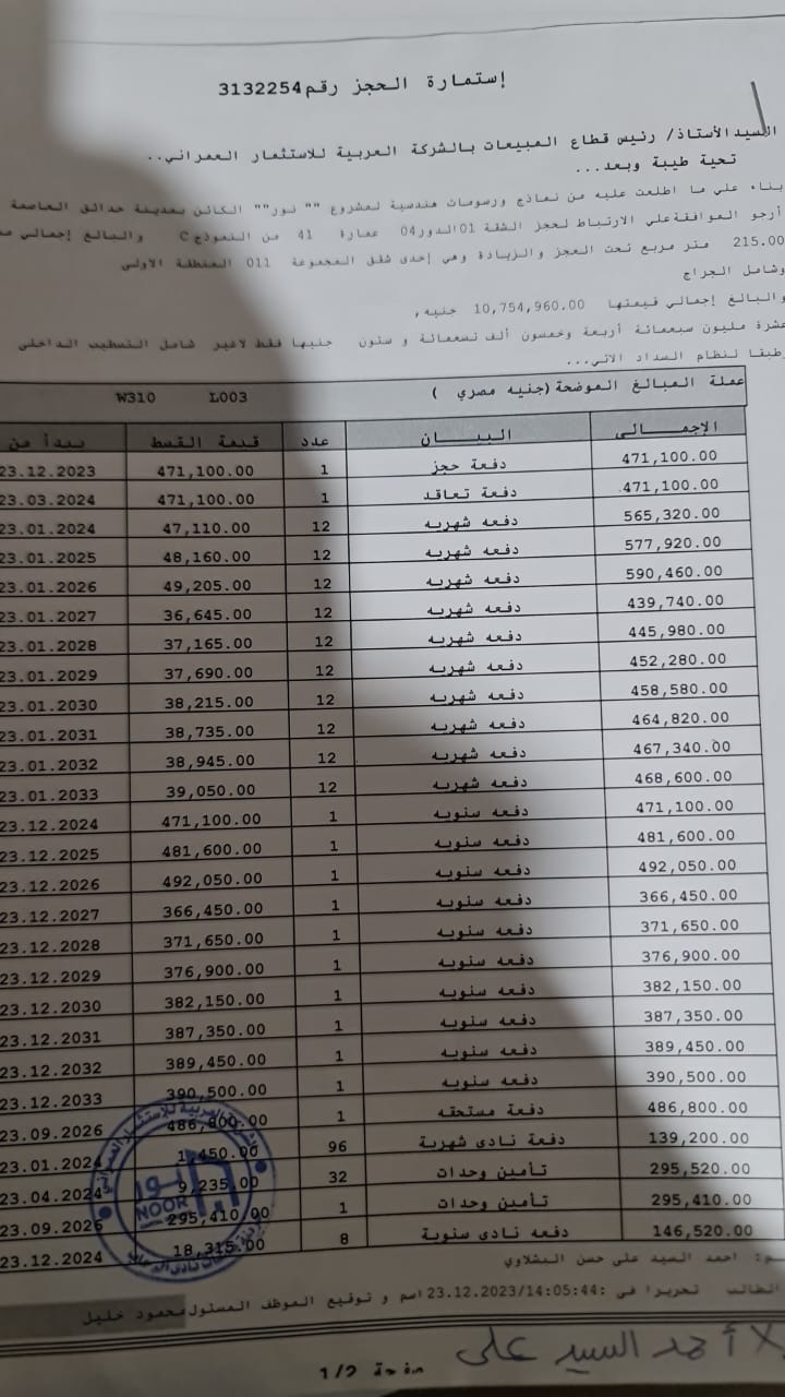 بمدينة نور شقه مساحه 215 متر خطوات من النادي المرحله الاولى