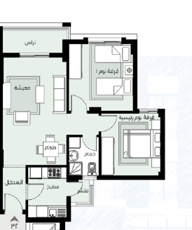 شقة 79 متر دور ثالث طرفية في B14 مدينتى