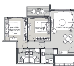 غرفتين و حمامين منهم حمام بغرفة النوم الرئيسية