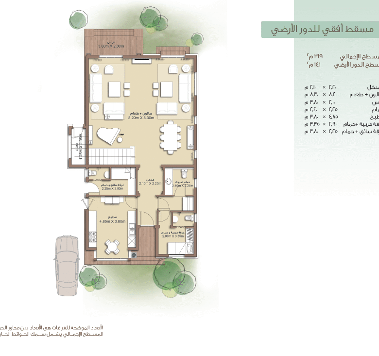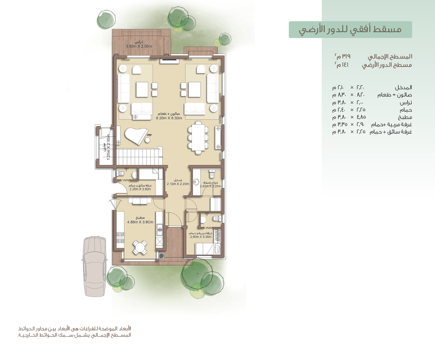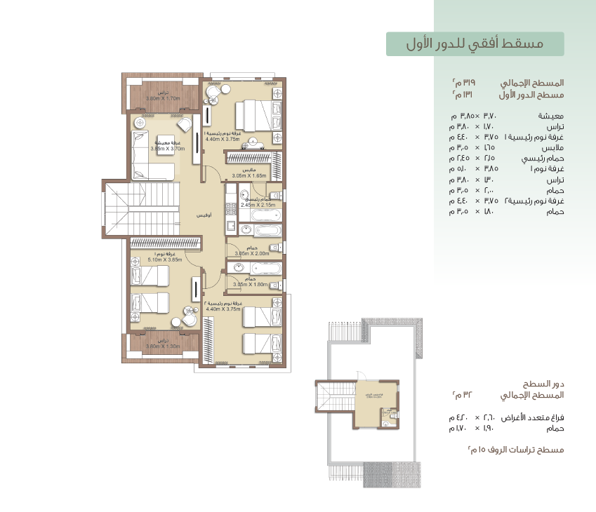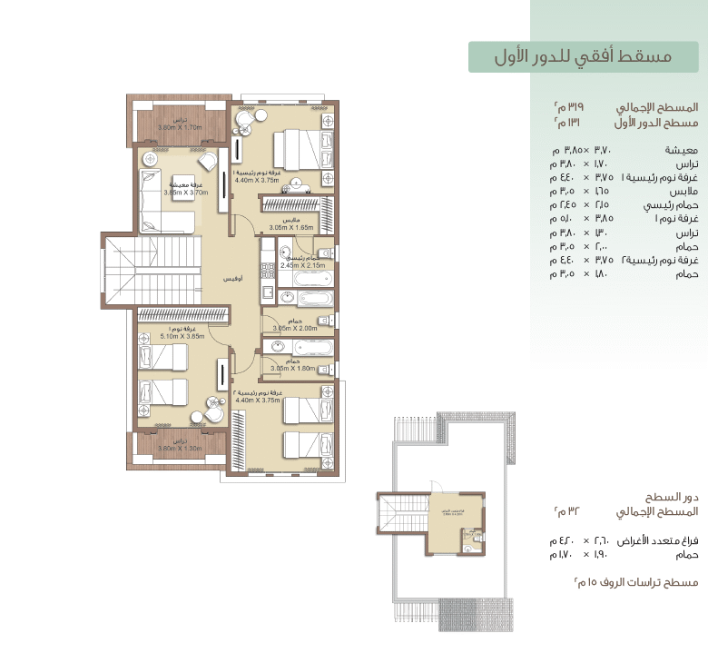 مساحة مبانى 319 متر و مساحة أرض 448 متر