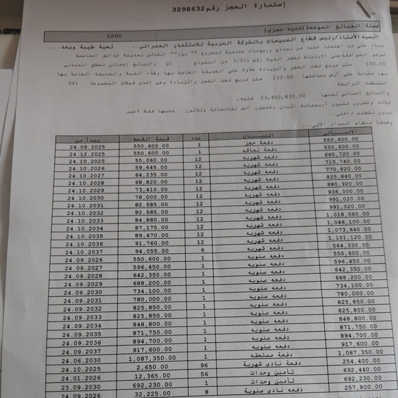 المدفوعات حتي الان 650 الف و مطلوب أوفر 650 الف