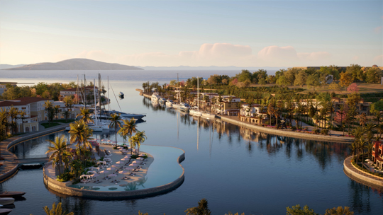 مارينا عالمية بمساحة 200,000 متر مربع، تستوعب حتى 320 يخت، منها يخوت يصل طولها إلى 70 متراً.